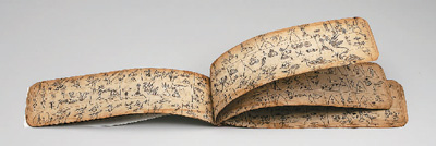 在“民族文字古籍”展廳,古籍文獻(xiàn)、碑銘拓片、金石印章等訴說著各民族的悠久歷史。納西族東巴文是一種兼?zhèn)浔硪夂捅硪舫煞值膱D畫象形文字,被稱為文字起源和發(fā)展的“活化石”。東巴經(jīng)是用東巴文記錄的經(jīng)書,內(nèi)容涉及歷史、政治、天文、地理等方面,蘊(yùn)藏著豐厚的文化內(nèi)涵。